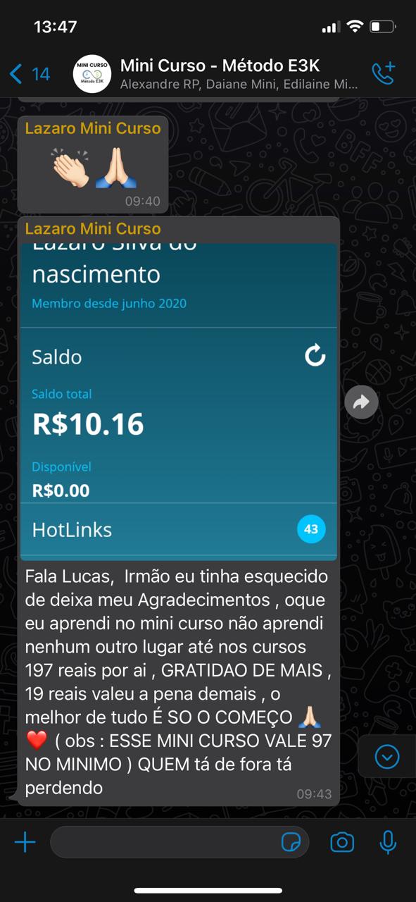 Criador do Método E3K, Empreendedor Digital, Especialista em Marketing de Afiliados e em toda minha carreira tenho testado inúmeras técnicas e estratégias de vendas online.